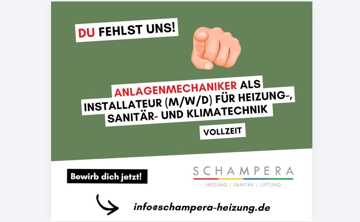 14.03.2026: Du fehlst uns! ANLAGENMECHANIKER/IN für Heizungs-, Klima- und Sanitärtechnik (m/w/d) in Vollzeit